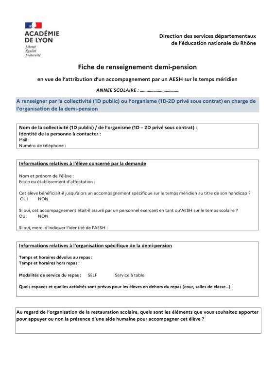 FICHE RENSEIGNEMENT DEMI-PENSION